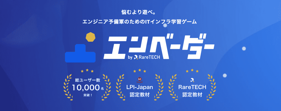 エンベーダーは、ITスクールRareTECHのインフラ学習教材として誕生しました。 「遊びながらインフラエンジニアへ」をコンセプトに、インフラへの学習ハードルを下げるツールとして運営されています。