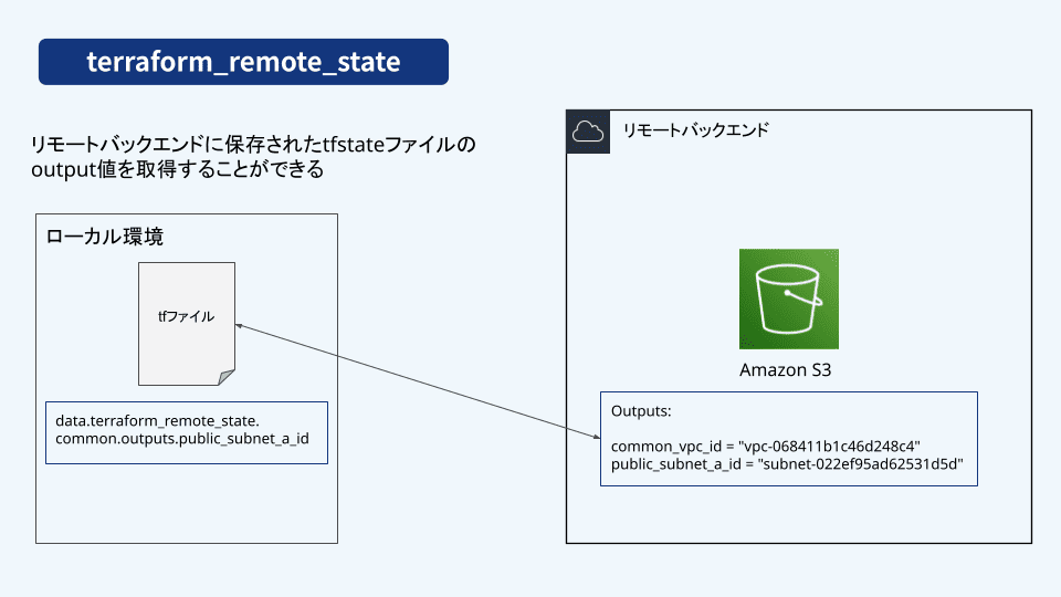 IaCツールのTerraformを使用してプロジェクトを進めている場合、作成したリソースの情報を参照して別のリソースを作成したい場面に遭遇します。このような時に役立つのがterraform_remote_stateデータソースです。この記事ではterraform_remote_stateの基本と、使い方について解説します。